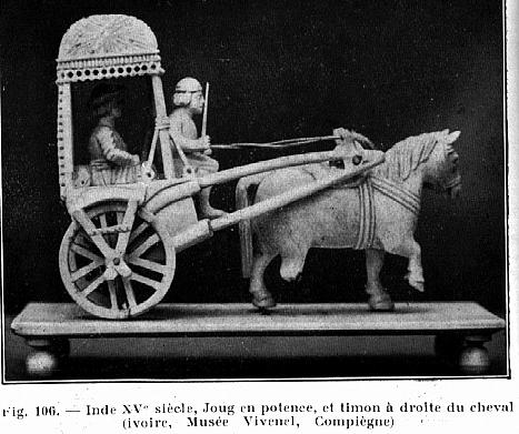 | A "Throat and Girth" harness on a 15th century Indian 2-wheeler. |