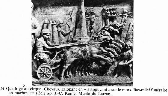 | A Roman "Throat and Girth" harness in a race. |
